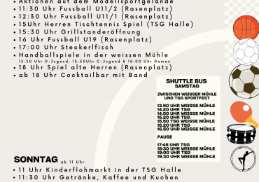 Das TSG Sportwochenende war ein voller Erfolg und bot für Jung und Alt zahlreiche Aktivitäten und kulinarische Köstlichkeiten. Am Samstag begann der Tag mit einem spannenden Tischtennis-Liga-Spiel, da…