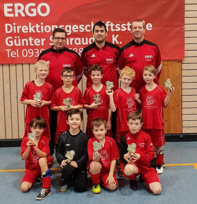 Am Sonntag, den 13.1.2019 fanden sich acht Mannschaften zum U9-Turnier des ERGO Mühlencups 2019 ein. Zu unseren beiden Heimteams (U9 Jahrgang 2010 und U8 Jahrgang 2011) gesellten sich noch die beiden Mannschaften des FC Grünsfeld (welche allerdings mit zwei jahrgangsgemischten Mannschaften aufliefen), dazu die Nachbarn vom SV Kürnach und ASV Rimpar und die Mannschaften vom TSV Reichenberg und vom SV Sonderhofen.