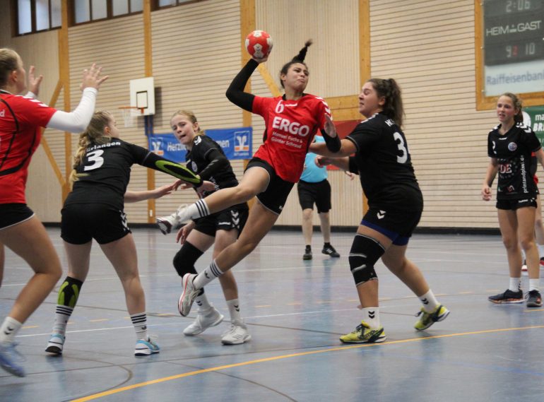 Nur die erste Mannschaft musste am Ende gegen ein routiniertes und cleveres Team des TV Großlangheim Federn lassen – die Köpfe brauchten die Spielerinnen von Michael Burger und „Co“ Jonathan Schrooten nach dem 18:25 (8:11) aber nicht hängen zu lassen. Sie zeigten sich im Vergleich zur zweiten Halbzeit in Höchberg deutlich verbessert und kamen gut in eine Partie, die von starken Defensivreihen geprägt war.